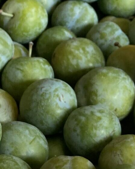 Le vieux verger offre des prunes Reine claude et de mirabelles de grande qualité que nous récoltons à maturité. Les Datils, petites prunes locales extrêmement goûteuses et sucrées, réintroduites en 2020, sont désormais disponibles pour être consommées fraîches ou mi-cuites.